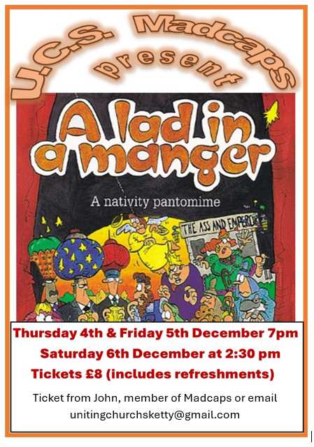 Tickets £8 includes refreshments. From cast members or email unitingchurchsketty@gmail.com