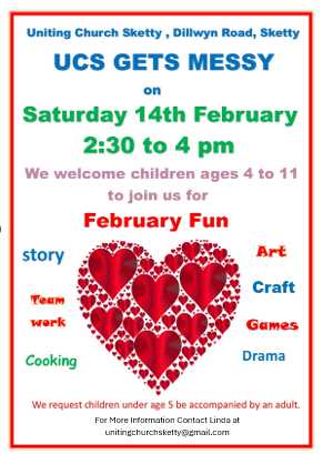 For children 4-11years. Children under 5 must be accompanied by an adult. For more information contact Linda at unitingchurchsketty@gmail.com