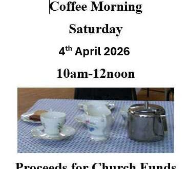 Coffee Morning Saturdaty 4th April 2026 10am-12noon23rd March 2026Written by a Church Member Proceeds for Church Funds